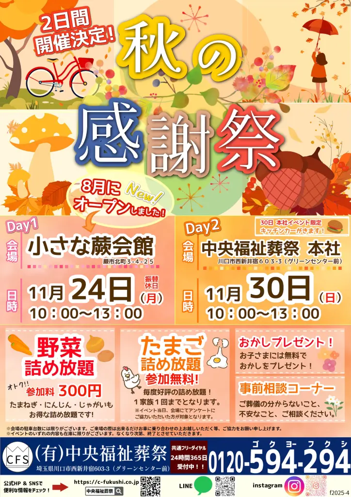 地域の皆様に感謝を込めて、秋の感謝祭を開催いたします。