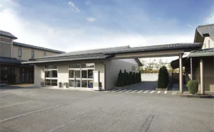 谷塚斎場「西館」は、「第1の間」「第2の間」の2式場からなり、最大40席の椅子席を備えた、家族葬や小規模な一般葬に最適な式場です。式場と同規模のお清め室が隣接しており、ご会葬者様をゆったりとおもてなしできます。親族控室は宿泊が可能でシャワールームも完備しているため、ご遺族様は心身の負担を軽減し、故人様と穏やかな最期の夜をお過ごしいただけます。出棺は12時まで受け付けており、日程に余裕を持ってご利用いただける利便性の高い施設です。