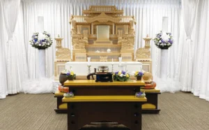 谷塚斎場「星館」は、12名までの少人数の葬儀でご利用いただける式場です。木など自然素材をインテリアに取り入れた温かな雰囲気の中で、葬儀を執り行うことができます。式場は最大12席まで対応可能となっており、ご家族だけでゆっくりとお別れをしたい方に適した規模です。同規模のお清め室も備えられており、落ち着いた空間の中で故人を偲ぶことができます。親族控室はございませんが、費用を抑えたい方や、ご遺族の負担を最小限にしたい方に適しています。
