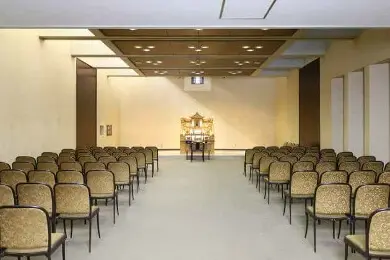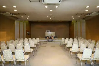 戸田葬祭場の「せせらぎの間」は、本館4階に設けられた、なじみやすい広さと穏やかな空気が流れる式場です。最大70席の椅子席をご用意でき、ごく一般的な規模のお通夜やご葬儀に最適です。式場が2つ用意されており、様々なニーズに対応可能です。式場内は程よい広さの空間で、在りし日の故人様を偲び、しめやかに旅立ちをお見送りいただけます。親族控室にはシャワー室も完備されているため、ご遺族様が心身ともに安らげるよう配慮された、使い勝手の良い式場です。