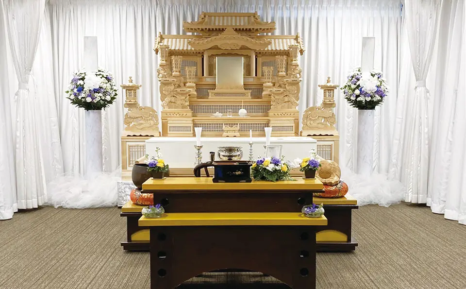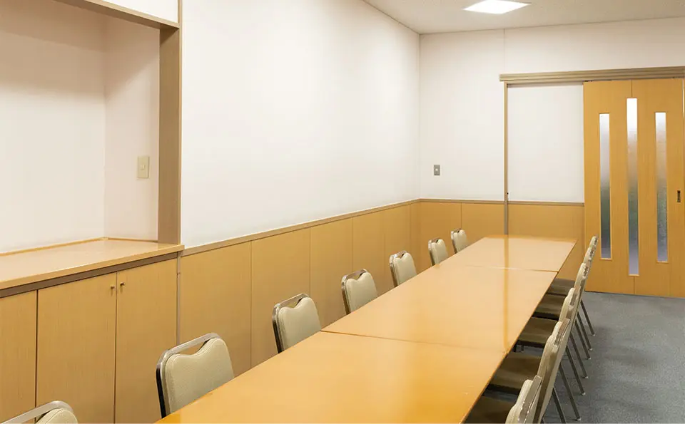 戸田葬祭場の「せせらぎの間」は、本館4階に設けられた、なじみやすい広さと穏やかな空気が流れる式場です。最大70席の椅子席をご用意でき、ごく一般的な規模のお通夜やご葬儀に最適です。式場が2つ用意されており、様々なニーズに対応可能です。式場内は程よい広さの空間で、在りし日の故人様を偲び、しめやかに旅立ちをお見送りいただけます。親族控室にはシャワー室も完備されているため、ご遺族様が心身ともに安らげるよう配慮された、使い勝手の良い式場です。